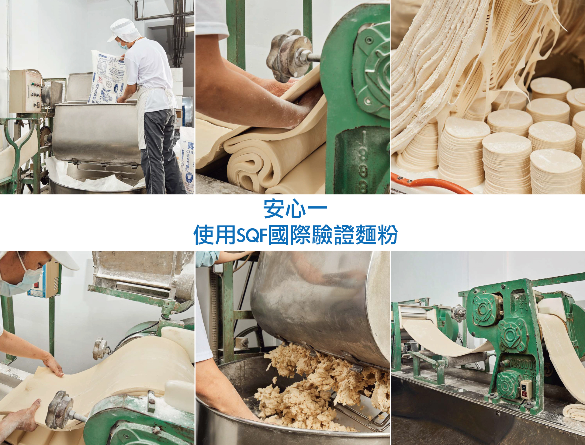 沛騰食品使用SQF-Level 3最高等級驗證之麵粉廠所生產之麵粉,為要給消費者最安心的食安保證。